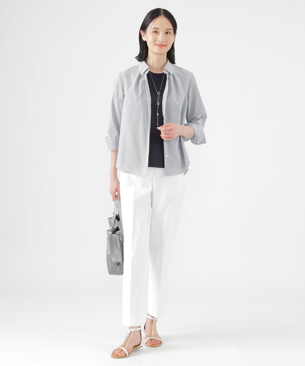 【L】【接触冷感】【UV対策】【ウォッシャブル】ファンクションタイプライターストライプシャツブラウス