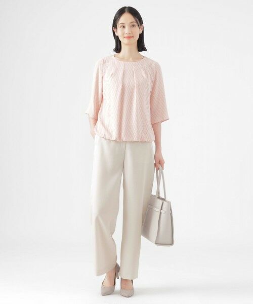後ろ身頃にカットソーを使用したコンビブラウスです。裾がゴム仕様で、着るだけでブラウジングしたようなスタイリングが叶います。パンツにもスカートにも合わせやすい着丈です。