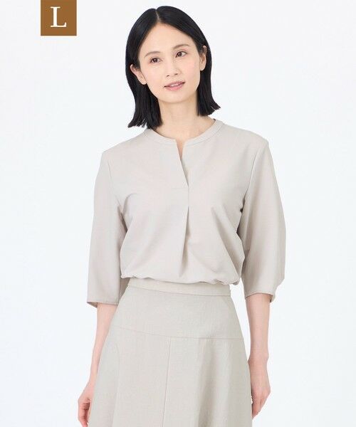 キーネックで襟あきが涼しげな印象のかぶりブラウスです。