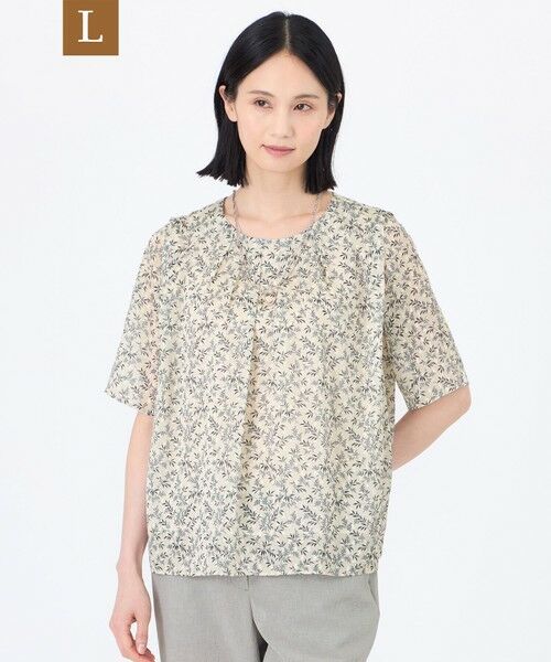【L】【ウォッシャブル】シャドーフラワープリントプルオーバーブラウス