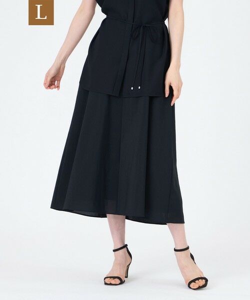 【トップス】フレンチスリーブのバンドカラーブラウスです。前開きデザインで羽織りとしても着用していただけます。ウエストリボンは取り外し可能で、ウエストのシルエットをお好みでアレンジできます。 【スカート】通気性を高めるために糸や織り方に工夫を凝らし、毛羽立ちにくく快適な素材に仕上げています。接触冷感や吸水速乾機能付きで夏でも涼しく、シワになりにくくお手入れも簡単です。