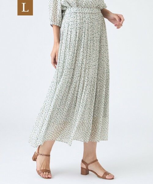 裾に向かって細かいプリーツがなだらかに消えるようデザインされており、柄に美しい変化が生まれる仕上がりです。同素材のブラウス(U3M01-601)とのセットアップもおすすめです。