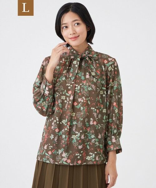 【L】【ウォッシャブル】BOHOプリントブラウス