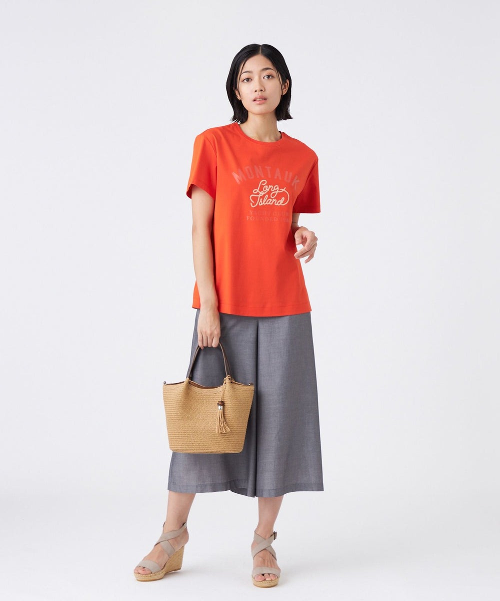 上品な光沢感が魅力の、大人の洗練を引き立てるプリントTシャツです。 架空のヨットクラブ「Hampton Yacht Club」のクラブTシャツをイメージしたグラフィックです。「1986」はトランスワークの設立年と同じで、中央のロングアイランドはロープ文字でニューヨークのロングアイランド島を表現しています。