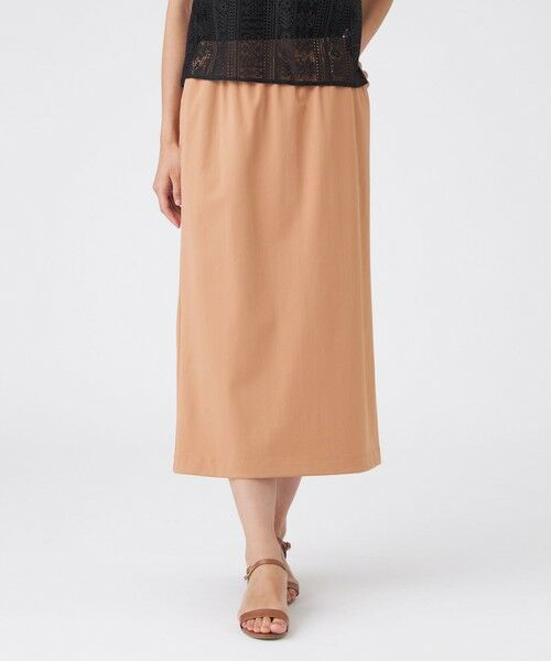 ストレートシルエットが魅力の一着です。伸縮性に優れたトリコット素材を使用しており、快適な着心地と美しいシルエットを両立しています。ウエストは全体にゴムを配した仕様で、着脱もしやすく、デイリーに活躍するアイテムです。