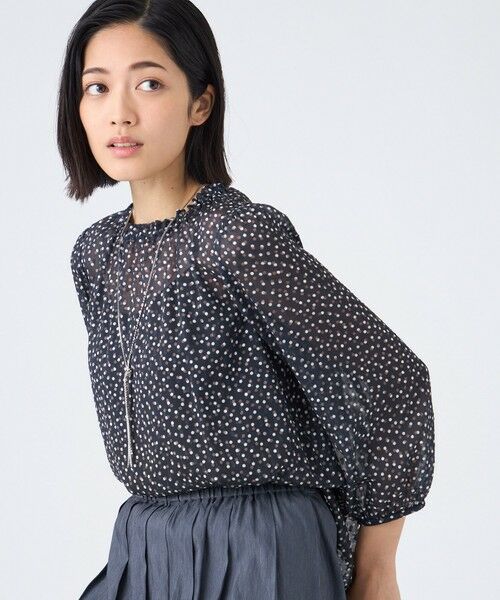 不規則に並ぶドットプリントが甘くなりすぎず、こなれた印象のブラウスです。