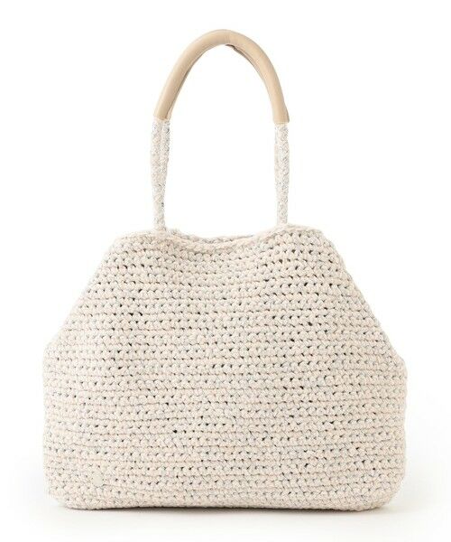 ポリエステルのモール糸とシルバーのポリプロピレンコードを合わせて編み上げました。絶妙な色と編みたてたショルダーがポイントのタウン向けトートです。コーディネートのアクセントとして活躍します。
