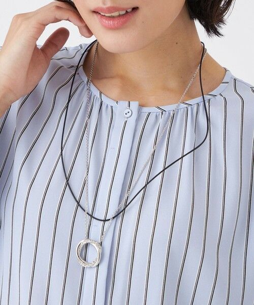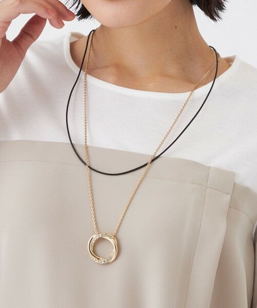 リングにガラスビジューを絡ませて高級感を出した、ワンポイントネックレスです。附属にコットンコードもついており、シチュエーションに合わせて使い分けすることができます。