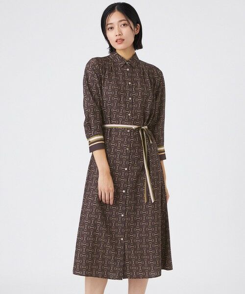 【ウォッシャブル】ビットプリントデシンワンピース上品なプリントをあしらったワンピースです。カフスとリボンベルトのボーダー柄がアクセントです。暑い時期でもさらっと着用していただける素材です。クラシカルなビット柄にアクセントカラーを配色したプリント素材です。ボーダー柄をコンビ使いしています。軽やかな風合いのポリエステルデシンを使用しています。アームホールには抗菌・消臭テープを附属しています。【着用推奨シーズン】オールシーズン