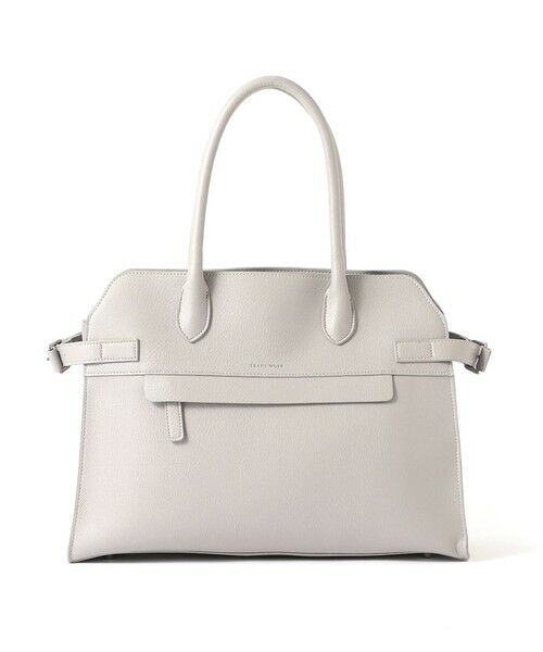 必要な部分にだけ裏地を付けた1枚仕立てなので軽量です。整理整頓しやすいように、内側中央に取り外しのできるペンホルダー、スマホ入れがついたファスナー仕切りをつけました。バッグはA4サイズのものはすっきりと、13インチのPCも収まります。内側にさらに2か所のポケット、表面にもファスナー隠しポケットと収納力があります!ONでもOFFでも使用できるデザインとなっています。