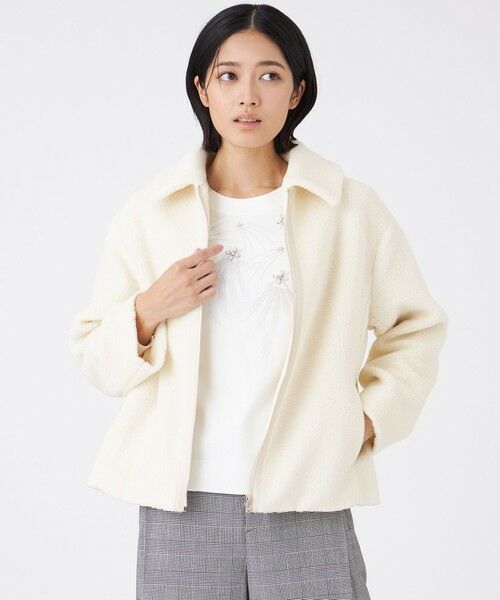 1枚で華やかなビジューニットはお顔まわりを明るい印象にしてくれます。ブラウンパンツは広すぎない裾幅、しっとりした肌触りがオススメポイントです。冬に1着は持っていたい白のコート。 ボア素材で軽くて暖かく。 ショート丈のゆったりとしたシルエットで気軽に羽織れます。【モデル身長:160cm】