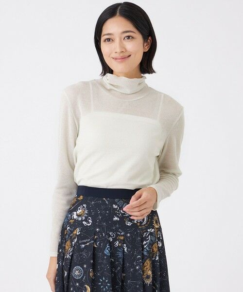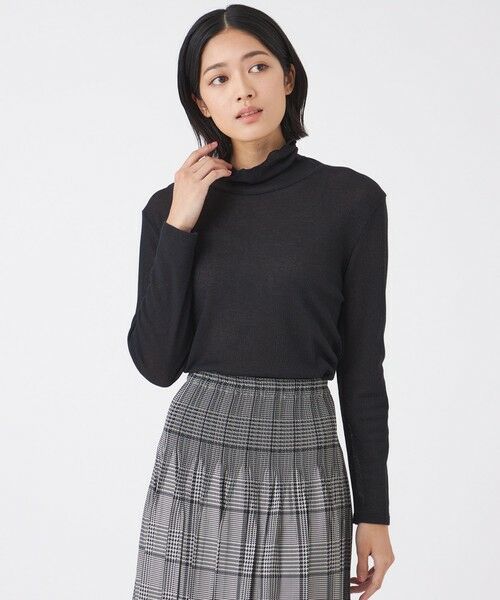 【ウォッシャブル】強撚ラメテレコカットソーラメ糸を使用したハイネックプルオーバーです。フィットしすぎず、インナーにも最適なシルエットです。お手持ちのブラウスなどと合わせて、レイヤードのスタイリングもおすすめです。程よいシアー感でロングシーズン着回しが可能な便利なアイテムです。特殊な細番手のラメ糸を使用し、強撚糸と交編して作られたハイゲージのラメテレコです。先染めで生地を編んでいるため、反染めとは異なり、非常に柔らかい風合いが特徴です。最終の仕上げでも番手が細いため、特殊な加工を施して生地を仕上げています。アームホールには抗菌・消臭テープを附属しています。【着用推奨シーズン】秋〜春