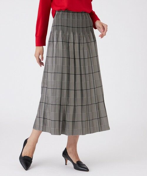 シャーリングを施したグレンチェック柄ジャガードのフレアスカートです。