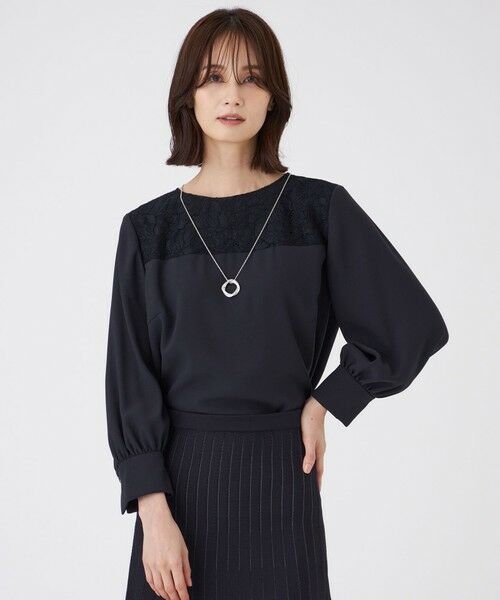 レース切り替えと袖口ギャザーのパフスリーブが華やかな印象です。同素材のパンツ(U1R13-643)とのセットアップもおすすめです。