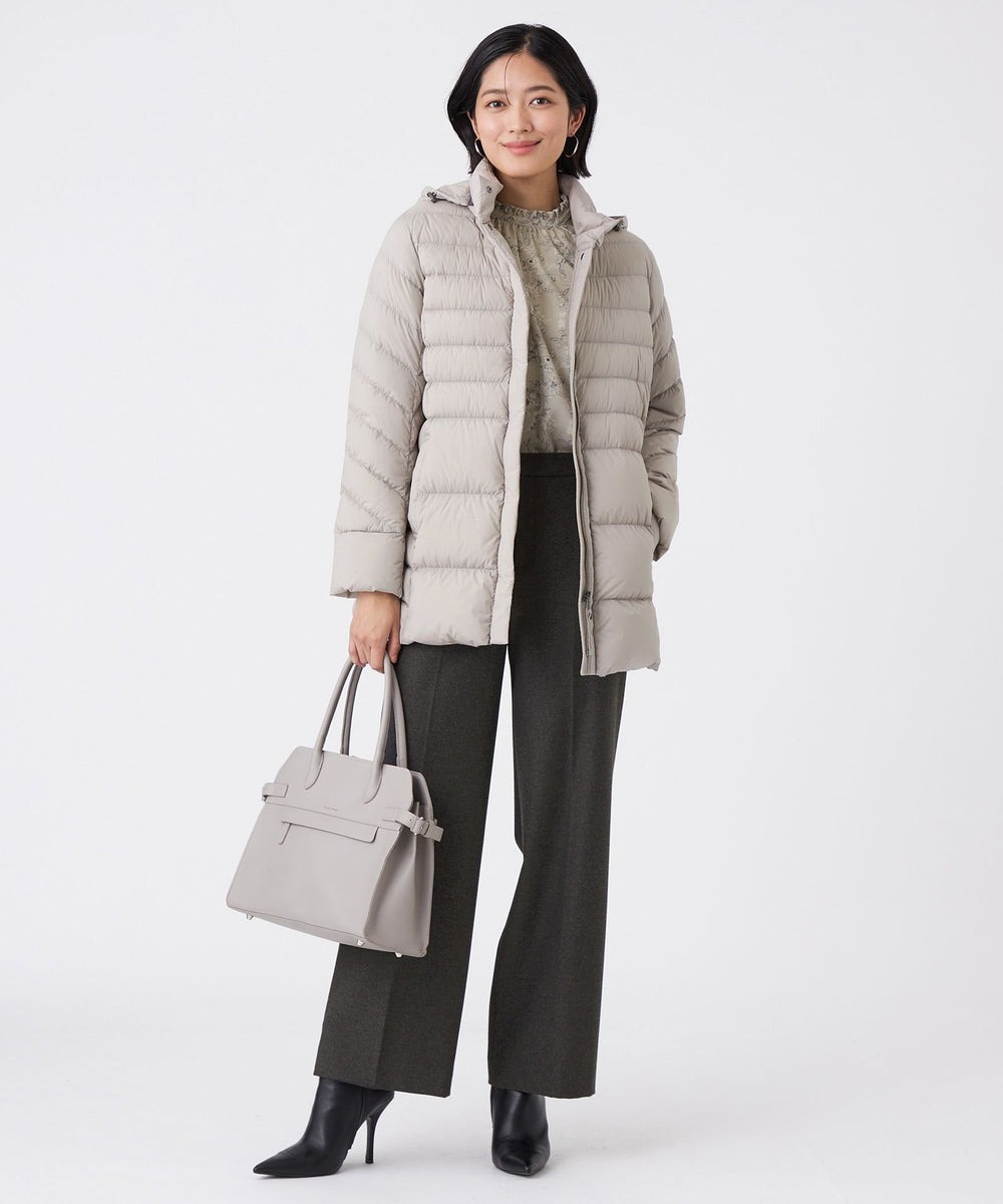 軽量で暖かい高品質な青森県産のダウンです。表地とダウンが軽量でストレッチ性があるので、抜群に着心地の良い防寒アウターです。袖の斜めステッチは身幅を細く見せる視覚効果があります。取り外しフード付きです。適度な通気性により、快適な着心地を生み出します。