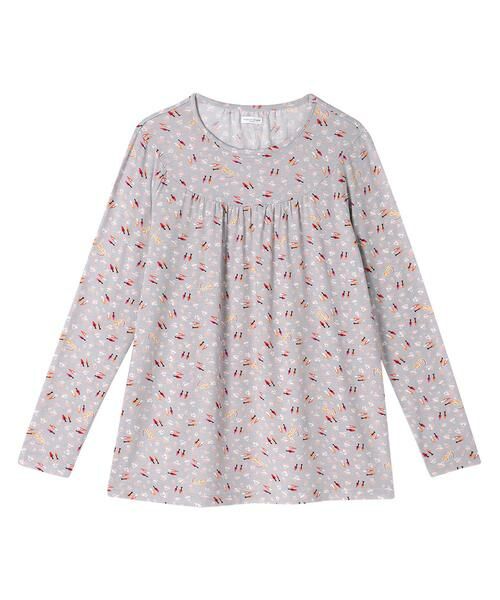 ・前見頃の切り替えにギャザ-が入った、ふわりとしたデザインがポイントのTシャツ