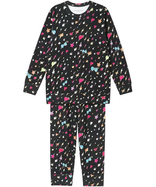 ・不思議の国の夜空にきらめく花火のイメージを、星やハートやリボンなどのモチーフで表現した柄