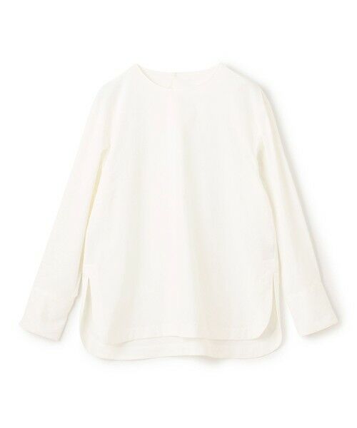 ■デザイン説明シンプルで洗練されたデザインのクルーネックプルオーバーシャツ。特徴的な長めのカフスがさりげないアクセント。太めのステッチを施したシャツテールは、ボトムスにインせずそのまま着ても決まるデザインで、スタイリングの幅を広げます。1枚でシンプルに着るのはもちろん、ニットやスウェットとのレイヤードスタイルにもぴったり。季節を問わず活躍する、万能アイテムです。