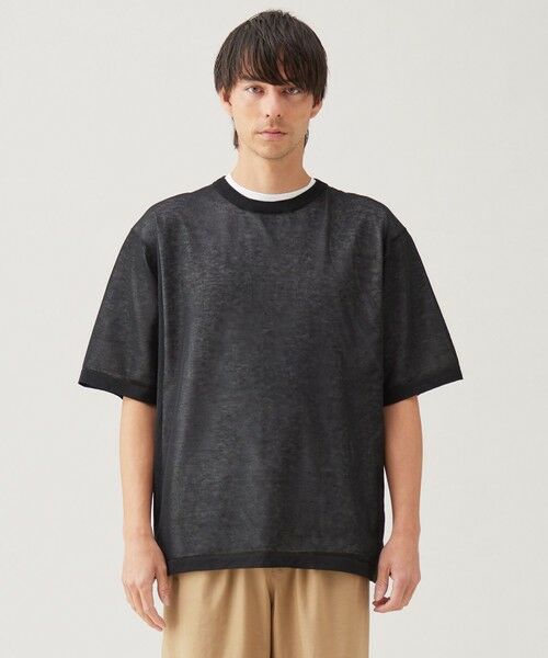 ■デザイントレンド感溢れるシアーニットTEE。レイヤード使いで楽しんでいただけるよう、インナーにTシャツを重ね着可能なゆったりとしたサイズ感で仕上げています。シアーなので涼しくて軽く、夏場に重ね着してもストレスフリーな夏のニットです。