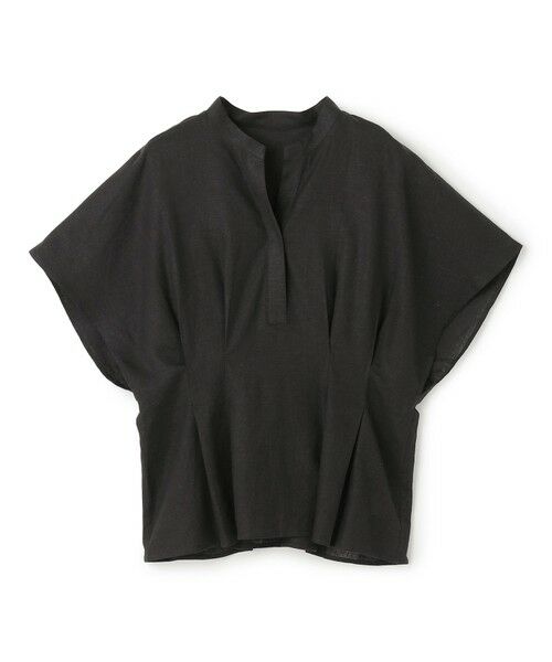 ■デザインさらりとした清涼感が嬉しい、リネン混素材のデザインブラウス。ウエストシェイプしたデザインがポイントで、気になる二の腕やおなか周りをさりげなくカバーしてくれます。身体から離れるゆったりしたシルエットで風を通すので、暑い時期にも快適な着心地です。カジュアルにデニムを合わせたスタイリングから、きれいめなワイドパンツ合わせまで幅広い着こなしを楽しめます。
