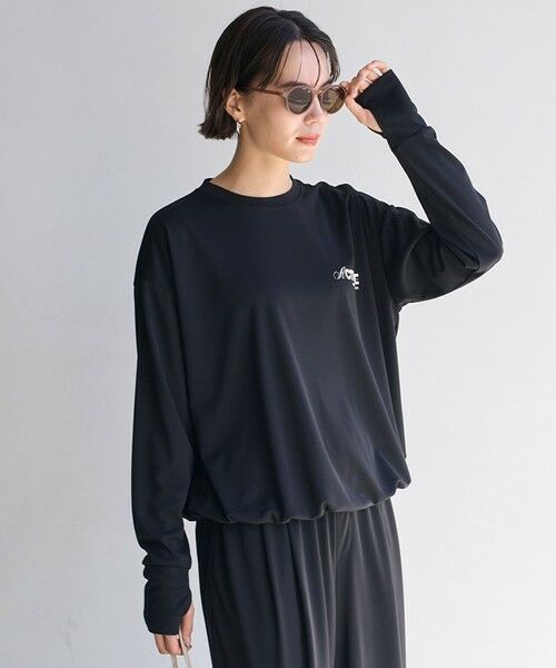 ■デザイン夏の紫外線が気になるお出かけだけでなく、水際のシーンでも着用可能なラッシュガード。袖は長めのデザインで、フィンガーホール付きなので手の甲まで隠すことが出来ます。首回りまでしっかりとつまっているため、紫外線対策も安心です。裾にかけてはたっぷりと分量感のあるドロストバルーンシルエットで、ウエスト周りをカバーしつつゆったりと着ていただけます。お好みに合わせて、ドロスト分量を調整できます。フロントとバックには、活動的な一日を後押しする内容のロゴプリントをデザインしています。別素材のショートパンツ(PRUMGA0656)や、セミフレアパンツ(PRUMGA0657)と合わせたセットアップスタイルもお楽しみいただけます。