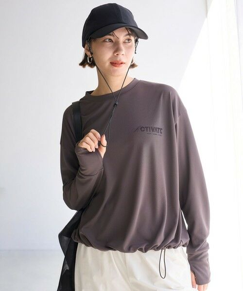 ■デザイン夏の紫外線が気になるお出かけだけでなく、水際のシーンでも着用可能なラッシュガード。袖は長めのデザインで、フィンガーホール付きなので手の甲まで隠すことが出来ます。首回りまでしっかりとつまっているため、紫外線対策も安心です。裾にかけてはたっぷりと分量感のあるドロストバルーンシルエットで、ウエスト周りをカバーしつつゆったりと着ていただけます。お好みに合わせて、ドロスト分量を調整できます。フロントとバックには、活動的な一日を後押しする内容のロゴプリントをデザインしています。別素材のショートパンツ(PRURGA0656)や、セミフレアパンツ(PRURGA0657)と合わせたセットアップスタイルもお楽しみいただけます。