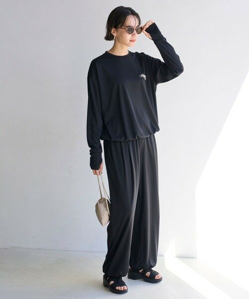 ドレープ感や太すぎないサイズ感で女性らしく仕上がるドロストパンツ