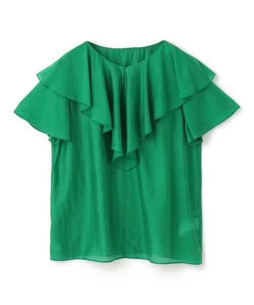 ■デザイン華やかな印象のラッフルカラーブラウス。シンプルなボトム合わせでも決まるので、ワンツーコーデでマンネリしがちな時期にぴったりの一枚です。風通しのいいフレアスリーブは、気になる二の腕をさりげなくカバーしてくれます。フェミニンなデザインながら、シックなカラーで大人カジュアルにスタイリングしやすいアイテムです。ワイドパンツには、インスタイルでのご着用がおすすめ。