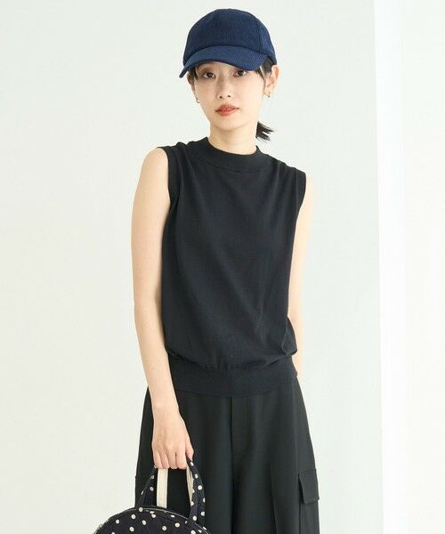 首に沿い過ぎない上品な印象のモックネックのノースリーブプルオーバー。