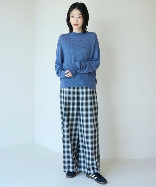 ■デザイングレンチェック柄が新鮮なタックワイドパンツ。暑い時期から着用できる、軽くて清涼感のある素材感で仕上げました。ウエスト内側のドロストコードでフィット感を調整可能です。※裏地が付いております。