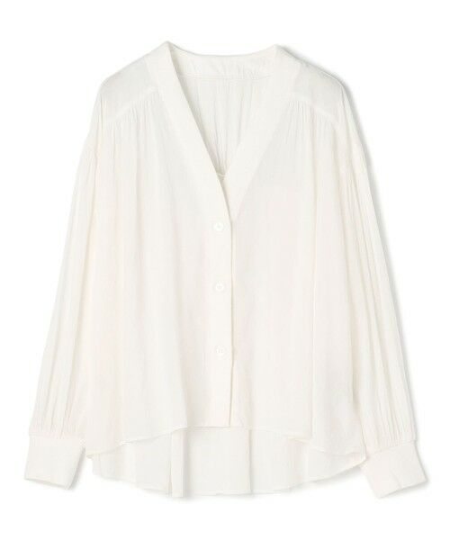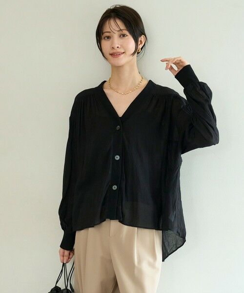 ■デザインゆったりとした身幅とドロップショルダーで、リラックス感のあるVネックシャツカーディガン。背中のシャーリングが、バックスタイルのアクセントに。ヒップをカバーしてくれる着丈なので、体型カバー効果も期待できます。1枚着としてはもちろん、ボタンを開けて羽織としても活躍します。シャツが苦手な方でも取り入れやすく、きれいめにもカジュアルにも着回せる1枚です。