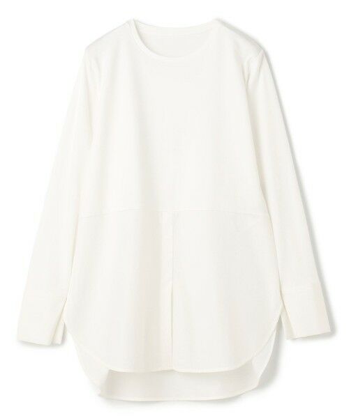 ■デザインレイヤードスタイルを格上げするカットソー。ロンTにカフスとシャツの裾部分をドッキングしたデザインで、スウェットやニットにインするだけでこなれたシャツレイヤードの見え感が叶います。身頃部分はカットソーならではの着心地の良さで、シャツを重ねた際のゴワゴワ感が苦手な方におすすめ。前後差のついたやや長めの丈感で気になる腰回りもさりげなくカバーしてくれます。