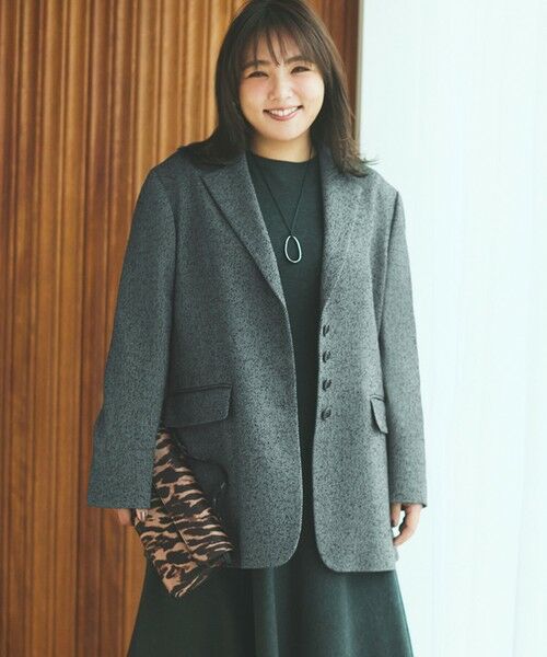 ■デザインシーズンムードを高めるツイード素材のシングルジャケット。ヴィンテージライクな素材感に、中央に寄せたボタンディティールがポイント。ボクシーなシルエットで、着こなしやすいバランスに仕上げました。きれいめにはもちろん、デニムでカジュアルにはずすスタイルもおすすめです。羽織るだけでこなれた着こなしが完成します。