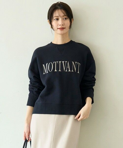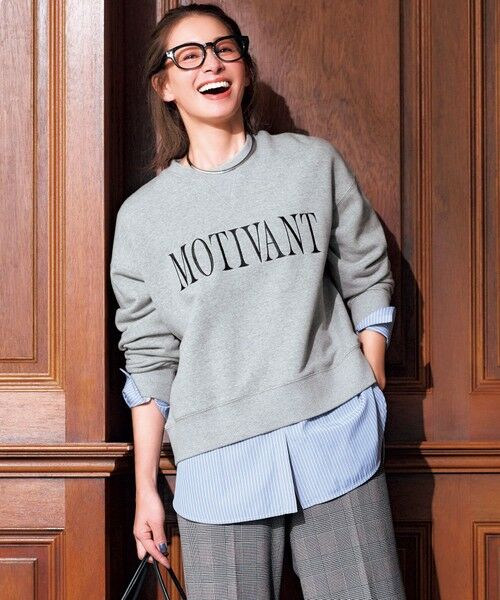 ■デザインゆったりとしたシルエットの、裏起毛スウェット。胸元のロゴ刺繍が、コーデのアクセントになります。伸縮性の高い裏毛を使ったゆったりとしたシルエットと、素材の弾力性を生かしたフォルム感が魅力のアイテムです。動きやすく、やわらかくて肌触りが良く、癖になる着心地のスウェットです。ロゴの意味:MOTIVANT→動機となる(フランス語)