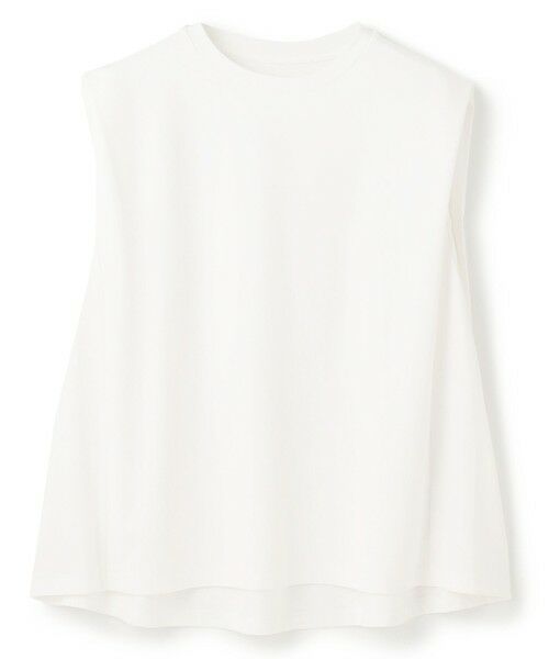 ■デザイン無駄をそぎ落としたシンプルなデザインと、実用的な機能を兼ね備えたレイヤードフロントTシャツ。前身頃は2枚仕立てで、下着の透けを防止する効果があります。裏側には帝人フロンティア提供の「CARAT」を使用しているため、吸水速乾性があり、ドライで清涼感のある着心地です。汗によるべたつきを抑え、快適に過ごしていただけます。一見シンプルに見えながらも、脇下のマチやバックスタイルのフレア感、肩先から流れるドレープ感が上品な印象のデザインです。程よくかたにかかるショルダーラインや、体のラインを拾いにくいボックスシルエットで1枚でもインナーとしても着回しの効く一枚。肩部分のタックが二の腕をカバーしてくれるのでノースリーブに抵抗のある方にもおすすめです。