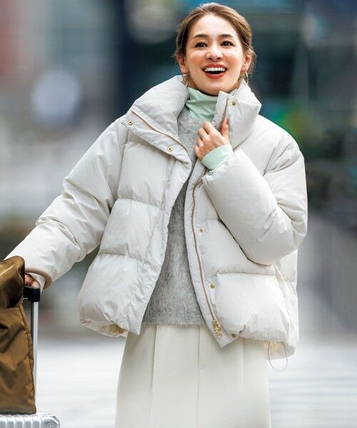 ■デザイン毎年好評な”TAION”コラボに、より暖かく着用できるショートダウンが登場!さりげない横段ステッチにすることで、よりきれいめシーンにも選びやすいデザインに仕上げました。テントのように広がるシルエットに、顔がうずまる高めのスタンドカラーがポイントで、大きめの衿は前を開けても顔周りを華やかに見せてくれます。適度なボリュームで暖かく、着ぶくれして見えないようパーツによってダウンの分量を調節しています。裾にはドロスト付きで、スタイルに合わせてシルエットのアレンジが可能です。