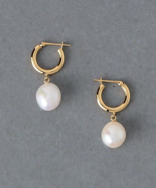 軽やかな着け心地のフープピアスに添えられた淡水パールは、一点一点形が異なる自然な造形美を生かしたデザイン。