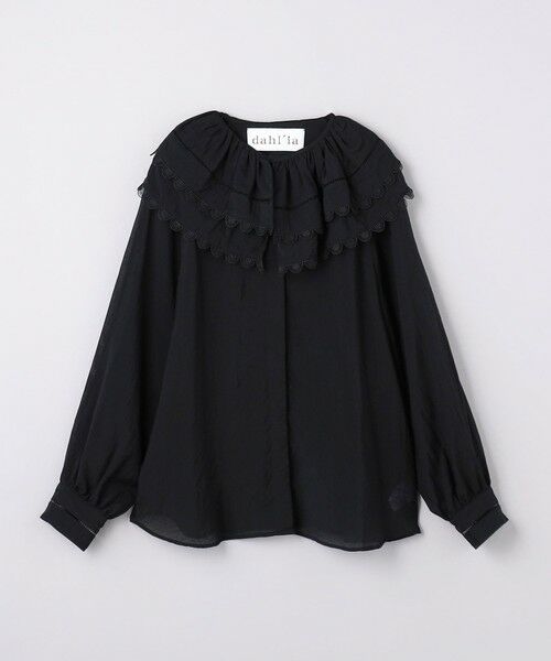 顔周りが華やぐビッグフリルカラーが印象的なシャツ