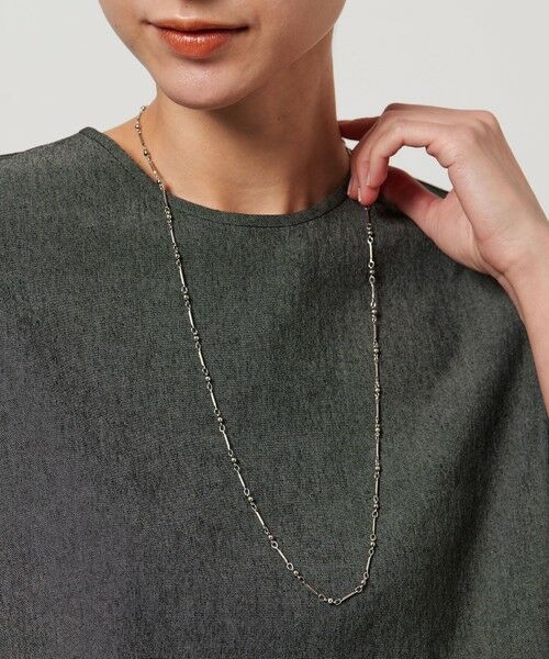 さまざまなチェーンを組み合わせてリズミカルに配したネックレス。