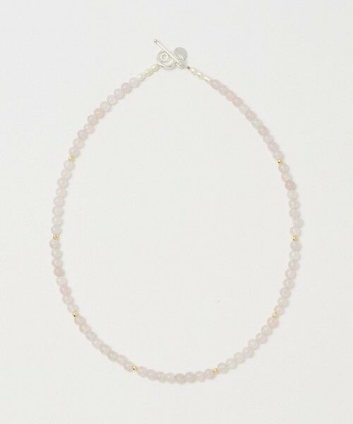 肌馴染みの良い淡いピンクのローズクォーツが女性らしさを引き立てるアイテム。