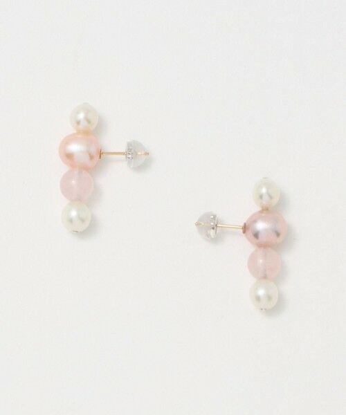2色の淡水パールにローズクォーツの柔らかな色合いが、明るく美しい耳元を演出。