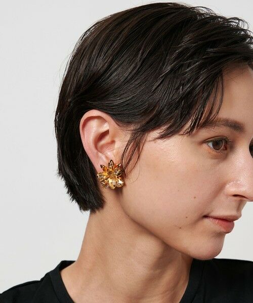 甘さ控えめのシャープなフォルムで、鮮やかなゴールドカラーが耳元で存在感を放ちます。