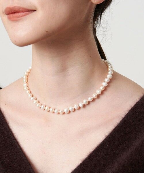 楕円の淡水パールを一粒ごとに手結びしたノット仕上げのネックレス。