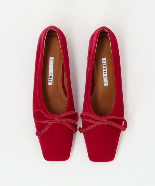 深めのアッパーにリボンがアクセントになったバレエシューズ