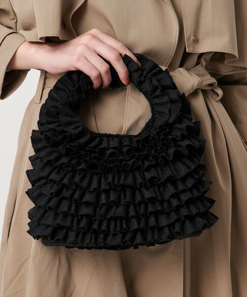 断ち切りのフリルを全面にあしらった華やかなワンハンドルバッグ