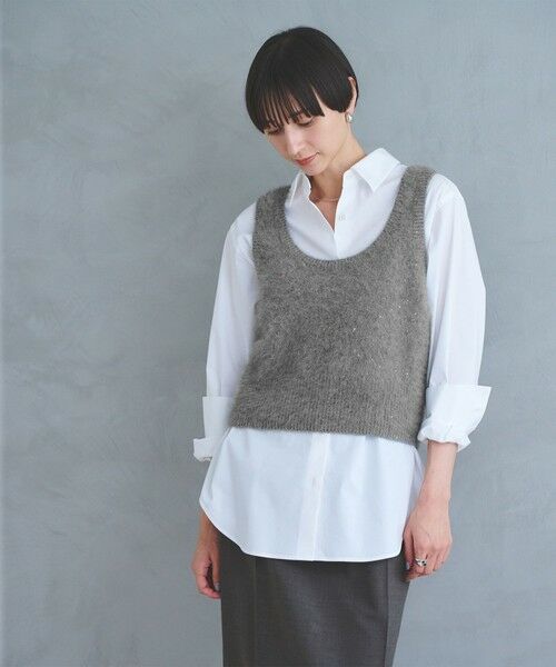 さりげないスパンコールのきらめきがアクセントになるニットベスト