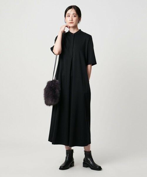 素材の特徴を活かした布帛見えするハーフスリーブワンピース。