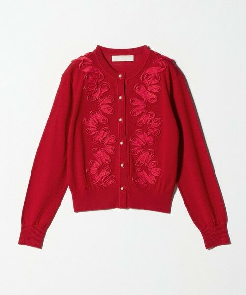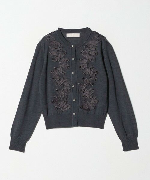 ハンドメイドでサテンコードをほどこしたクチュール感あふれるブラウス風刺繍カーディガン。