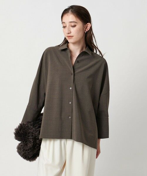 ゆったりとした身幅でテントラインが特徴のドルマンスリーブシャツ。