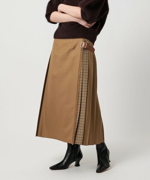 さりげないチェックが映えるコンビスカート
